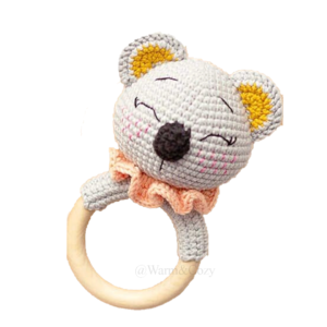 Delight your little one with this handcrafted toy made with 100% pure cotton yarn and a smooth, baby-safe neem wood ring.