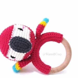 Delight your little one with this handcrafted toy made with 100% pure cotton yarn and a smooth, baby-safe neem wood ring.